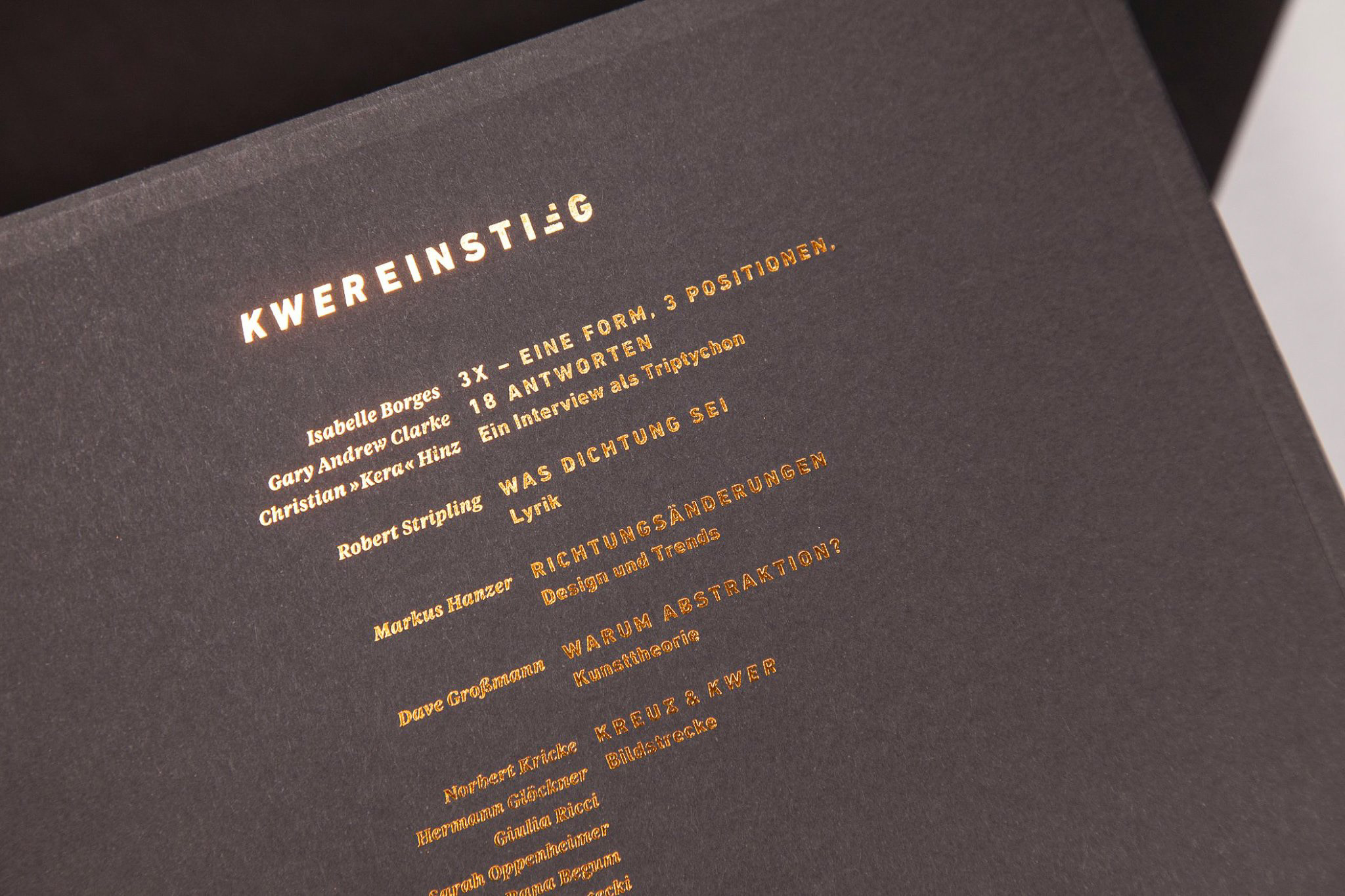 »Kwer – das Magazin der Abstraktion« ist ein mehrfach international ausgezeichnetes Printmagazin. Es beleuchtet den Begriff der »Abstraktion« in Kunst, Naturwissenschaft und Philosophie und wurde in 17 Ländern weltweit vertrieben. Das Projekt ist derzeit pausiert.